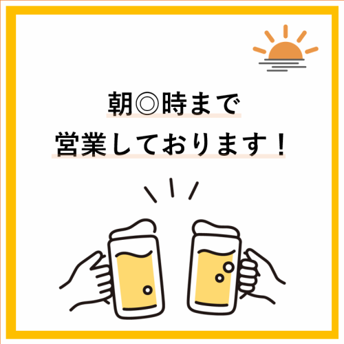 当店は朝まで元気に営業中!終電後の一杯や、深夜のちょい飲み、〆のお好み焼きにもぴったり。時間を気にせず、ゆっくり語れる酒場としてご利用いただけます。